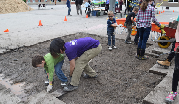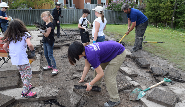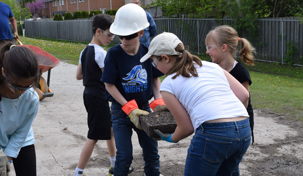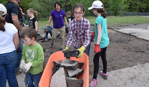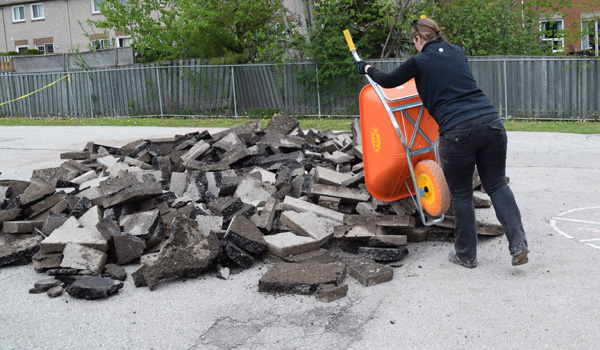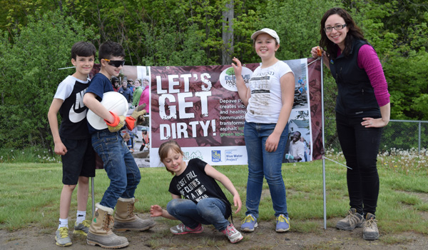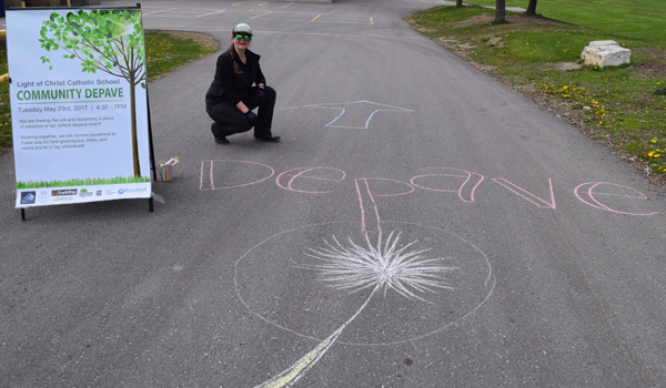 The Depave project was completed in partnership with Light of Christ CES, the York Catholic District School Board, YorkWay Paving, Gro-Bark, Evergreen, Green Communities Canada, and Depave Paradise.