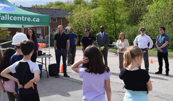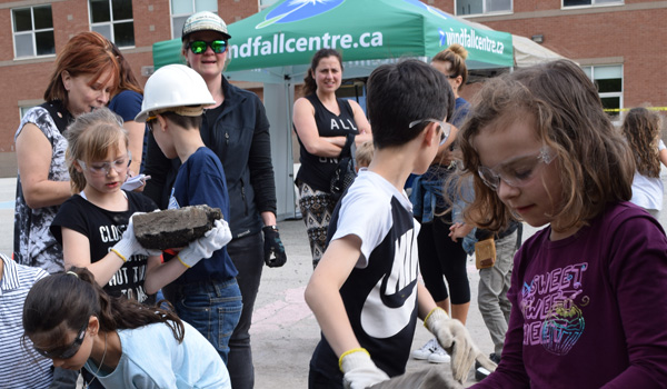 Excited and ready for the Depave Event at Light of Christ CES! A variety of steel-toe caps for our volunteers! Going over some Health & Safety rules. Group stretch and warm up! A few words from our VIPs - Travis MacDonald (Principal), Opiyo Oloya (School Superintendent), Elizabeth Crowe (School Trustee), Larry Tadman (Controller of Environmental Services with the York Catholic District School Board), and Brent Kopperson (Windfall Centre Executive Director). Opiyo Oloya (School Superintendent) and Andrew (student) kick off the depave event for us! The first pieces of pavement are removed! Thanks Rob Alpinelli (YorkWay Paving), Andrew (student), Opiyo Oloya (School Superintendent), Larry Tadman (Controller of Environmental Services with the York Catholic District School Board), Elizabeth Crowe (School Trustee), and Jen Atkinson (Windfall Ecology Centre Managing Director). Thank you to our VIP guests and project partners! Geared up and ready to depave! Geared up and ready to depave! Showing proper depaving techniques. Amazing student volunteers! Amazing student volunteers! Students of all ages helping out. Thank you to YorkWay Paving for all their help with this project! Working as a team to pry up all the pavement. These students were amazing! Piece by piece...Almost there! Working together for those heavier pieces. That's a huge mulch pile! Prying up some of the last pieces. Working together to get those final pieces removed.Our pile of pavement. We did it! Thank you to everyone who helped out! We did it! Thank you to everyone who helped out! Up next - machines will remove an additional 350m² of pavement to make way for green space! Thanks everyone!