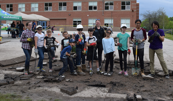 Staff, students and parents of Light of Christ Catholic Elementary School partnered with Windfall Ecology Centre on Tuesday May 23rd, 2017 to transform their schoolyard into green space.