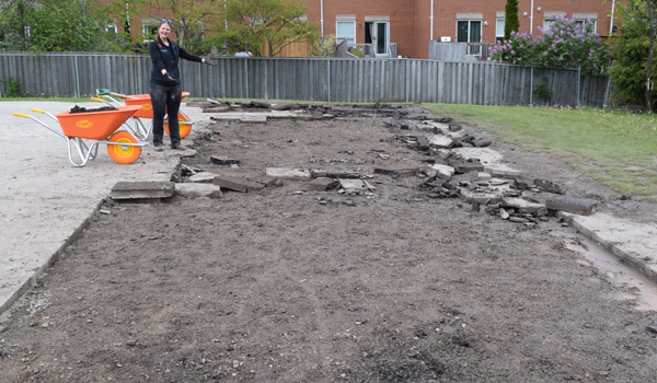 About 40 volunteers and community partners of all ages eagerly worked together to green the schoolyard at the Light of Christ Depave Event. Using hand tools and shovels, volunteers got their hands dirty and removed approximately 100m² of pavement by hand. Following the event, another 350m² of pavement was removed with heavy machinery, for a total of 450m²!
